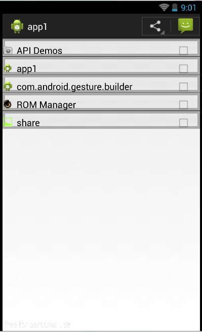 Above code will fetch all apps that can share content. in your emulator it won't display any options but in actual device it will display all apps in popup menu.