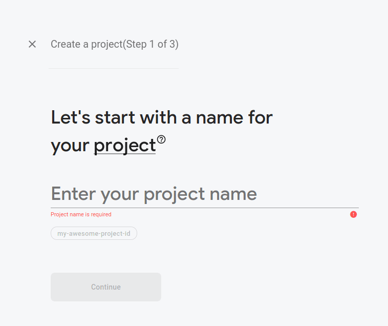 Goto Firebase Console, then click on add project if it was not created prior to this. If its first time you will see form like below to create your project.